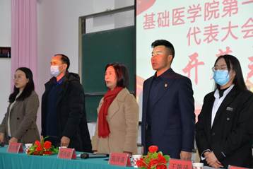 大会在雄伟的国歌声中拉开了序幕。首先由基础医学院学生党支部书记高泽谨宣读《习近平致全国青联十三届全委会和全国学联二十七大的贺信》,向学生们传达了总书记寄与广大青年坚定理想信念、培育高尚品德、练就过硬本领、勇于创新创造,在矢志奋斗中谱写新时代青春之歌的殷切期望。基础医学院(公课部)党总支书记周凤娟致开幕词,表达了学院领导和老师对我院青年学子的充分信任和殷切希望。她对此次大会的开幕表示热烈的祝贺,对各位代表并通过他们向全院学生致以亲切的问侯,对坚守在学生工作一线、兢兢业业辛勤付出的所有管理人员和学生干部表达了衷心的感谢。