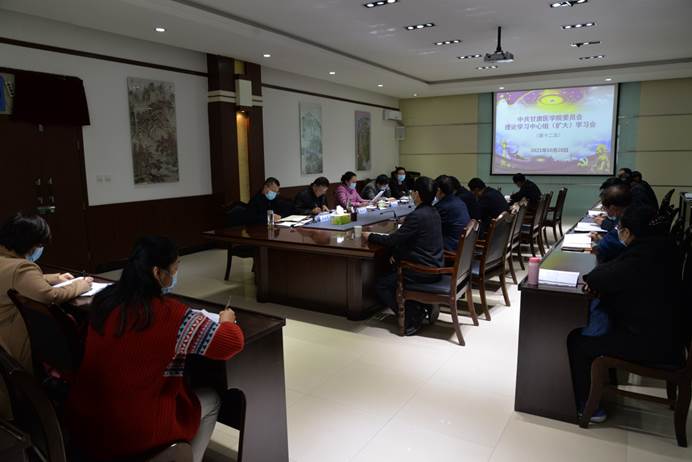 党委副书记、副院长崔安平,副院长李诚,副院长、附属医院党委书记雷鹏举,党委理论中心组全体成员参加会议。