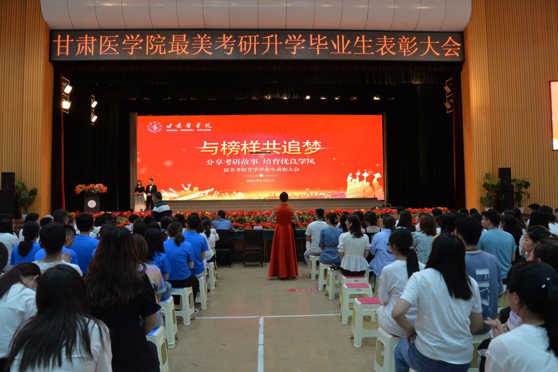 表彰大会上,考研成功学生以《凌晨的甘医》为主题,分享了自己的考研心得,由学生评选的各院系最喜爱的老师为“最美考研升学毕业生”颁发荣誉证书。