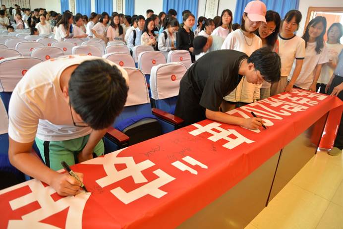启动仪式上,现场师生还在印有“甘肃医学院2021年‘安全生产月’和‘安全生产陇原行’”的横幅上签名。
