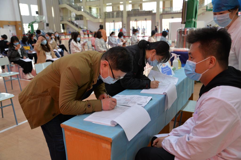 接种现场,人员信息核实、健康咨询、知情同意书填写、身份证信息录入、疫苗接种、现场留观等各环节环环相扣,学院相关职能部门以及志愿者协同配合,师生排队等候井然有序。