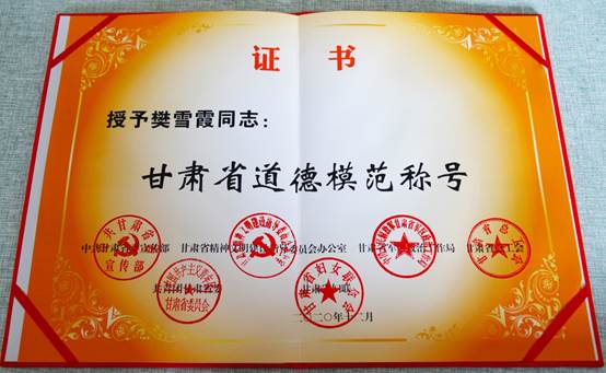 樊雪霞自小家庭贫困,父亲有精神疾患,母亲患有小儿麻痹,2010年双腿瘫痪,姐姐过早外出打工,樊雪霞年仅12岁就承担了家庭重担,洗衣做饭、料理家务,为柴米油盐奔波组成了她生活的大部分。十年来,在照顾生病的父亲和瘫痪母亲的同时,一步步在困境与艰难中,克服常人无法想象的困难,用她的坚强、乐观、勤奋、执着、坚韧与善良,认真读书、刻苦学习,完成了小学、初中、高中的学业,以优异的成绩考入医学院成为一名大学生,用实际行动实践着“百善孝为先”的传统美德。