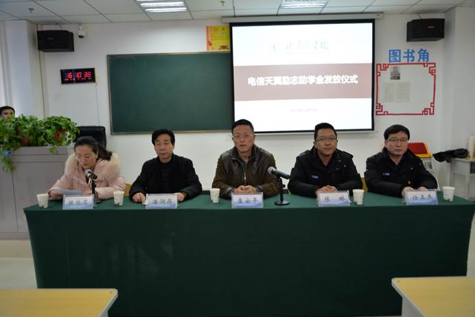 在电信天翼励志助学金发放仪式上,受助学生代表曹志政同学做了发言,中国电信平凉分公司党委委员、副总经理陈琳围绕本次资助的意义和学院与电信公司的合作取得的显著成果做了讲话,甘肃医学院党委副书记、副院长崔安平代表学院对中国电信平凉分公司的无私大爱和善行义举表示感谢,对受资助学生提出了三点希望,鼓励学生刻苦学习、追求卓越、关爱他人、感恩社会,争做新时代中国特色社会主义建设者和接班人。