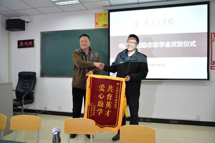 12月25日,中国电信平凉分公司天翼励志助学金发放仪式在学院2号教学楼举行。助学金发放仪式由党委组织(人事)部副部长潘润存主持,甘肃医学院党委副书记、副院长崔安平,中国电信平凉分公司党委委员、副总经理陈琳,中国电信平凉分公司校园营销中心总经理任正杰出席了发放仪式,50名在校受资助学生参加了助学金发放仪式。
