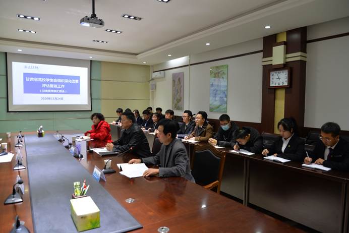 根据甘肃省高校学生会组织深化改革评估工作组统一部署,11月24日上午,共青团甘肃省委学校部副部长魏玮、甘肃省学联驻会执行主席应锦川来学院对院学生会深化改革评估工作进行复核检查。学院党委副书记、副院长崔安平出席座谈会,共青团平凉市委党组成员、副书记王悉润,共青团平凉市委学校少年部部长戴子杰,学院党委组织部(人事处)、团委负责人参加此次会议。