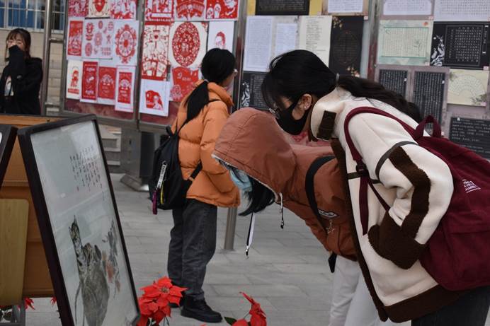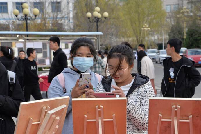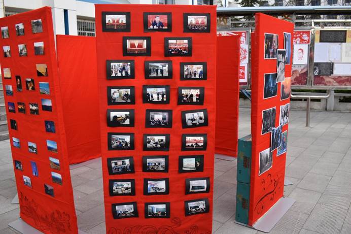 此次参展作品主题鲜明,内涵丰富,分为抗疫篇,油画篇、彩绘篇、书法篇、剪纸篇、硬笔篇6个篇章,用8个展板展出抗疫图片及学院广大师生学习十九届五中全会精神图片。由225张疫情期间感动人心的瞬间图片组成的“中国加油”4个大字牵动着每一位在场参观的师生。
