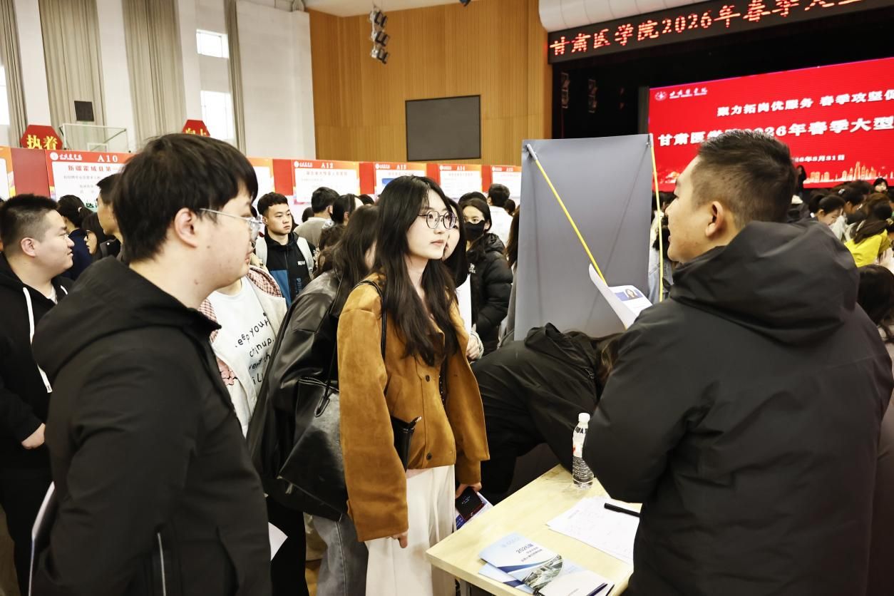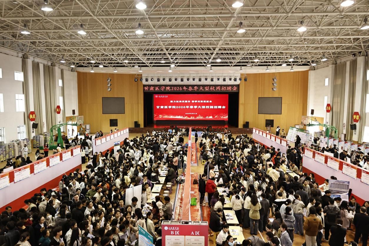 春风送暖,万物竞发。3月31日,我校2026年春季大型校园招聘会在学校体育馆火热开启。来自全国各地的95家用人单位携诚意而来,现场提供临床医学、护理学、药学、助产学、医学影像技术、医学检验技术、口腔医学、中药学、康复治疗学、针灸推拿学等2500余个优质岗位,上演了一场“人才与未来”的双向奔赴。当天同步举办专场宣讲会14场,共吸引1800多名毕业生到场参会。