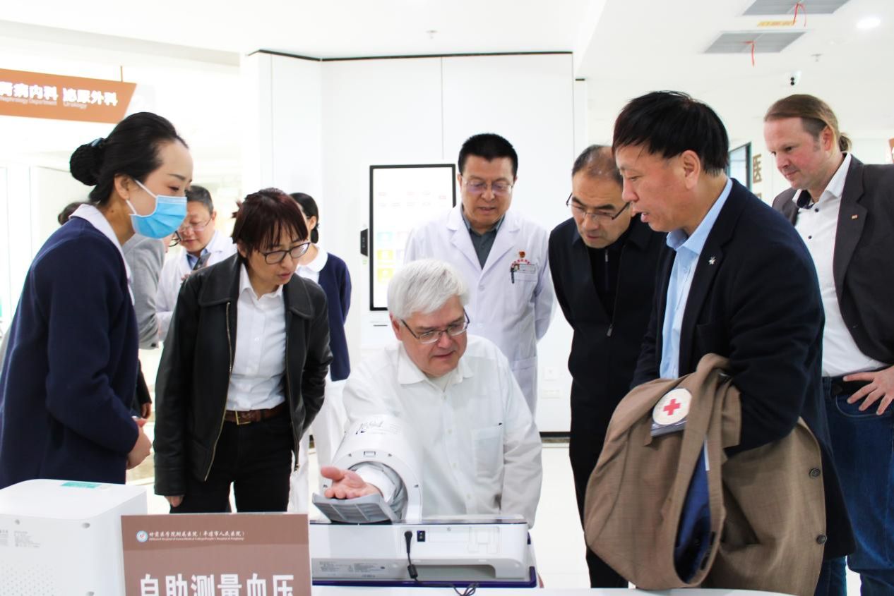 随后,党委委员、副校长赵玉敏陪同德国代表团参访学校附属医院,先后前往门诊楼、急救中心、康复医学科门诊、住院部等科室,详细了解医院在老年患者照护、多学科协作、临床教学等方面的运行模式。代表团对附属医院的设施条件、服务理念和教学实践给予了高度评价,认为双方在老年护理临床教学领域具有广阔的合作空间。