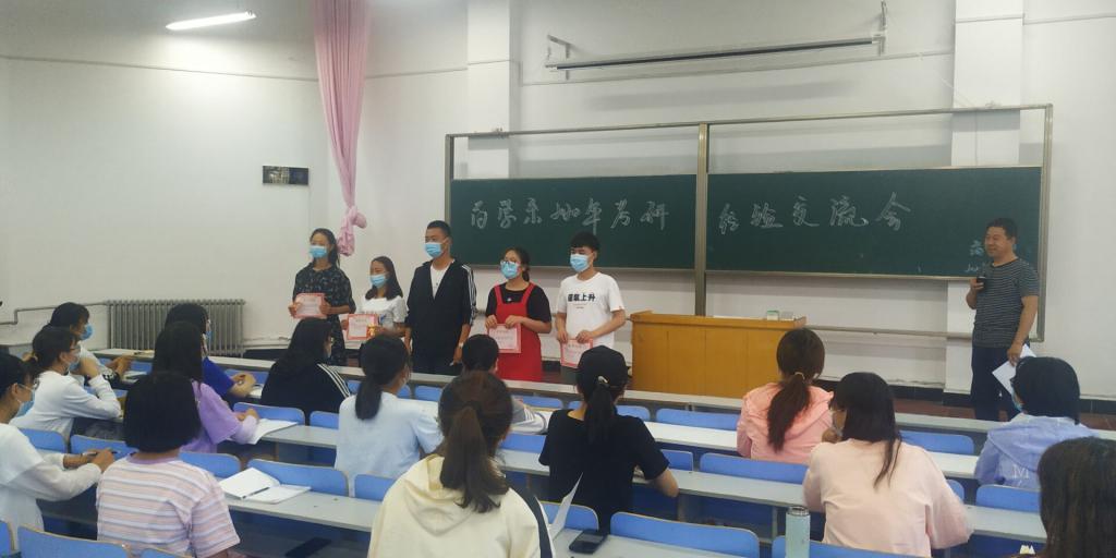 活动中,嘉宾为参加经验交流的王春霞、蒲自刚、李萌、成春亚、拜礼文五名同学颁发了“学习成才奖”荣誉证书,药学系副主任赵中玮发表了热情洋溢地讲话,鼓励受到奖励的五名同学在以后的学习中百尺竿头,更进一步,为自己争得更好的成绩,为母校争得更高的荣誉;激励在校学生以他们为榜样,积极进取,勤奋学习,提高自我,为自已在本科毕业时争得进一步学习、提升、深造的机会,为自己毕业时顺利就业储备必需的知识和能力;鼓励有考研意向的在校生忙起来、过忙日子,累起来,过累日子,苦起来、过苦日子,细起来、过紧日子,强起来、过好日子。王春霞、蒲自刚、李萌、成春亚和拜礼文五名同学做了考研经验交流,并与在场同学进行了互动,回答了同学们有关考研的其它提问。