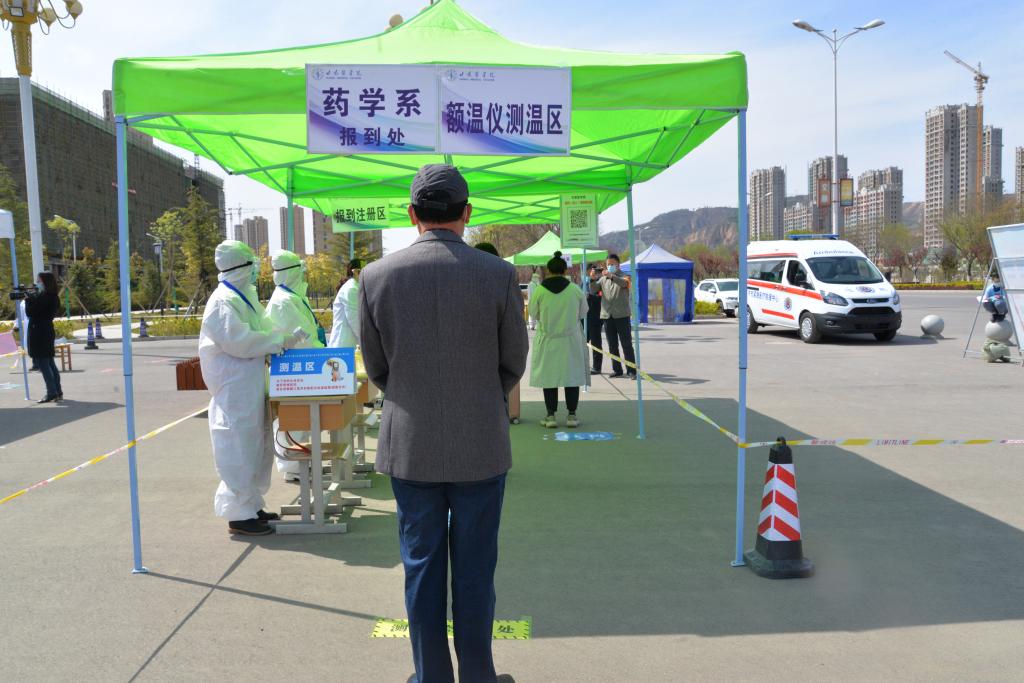 此次演练还模拟设置了突发状况,出现“体温异常学生”,由工作人员立即将其带至体温检测复检区复检,体温仍然“异常”,工作人员按要求上报学院新型冠状病毒肺炎疫情应急管理领导小组办公室,启动应急预案,将“体温异常学生”通过专用车辆,送往附属医院检查,同时工作人员及时对体温检测复检区进行全面消杀。演练中,各小组响应迅速,联络顺畅,措施果断,处置得力。