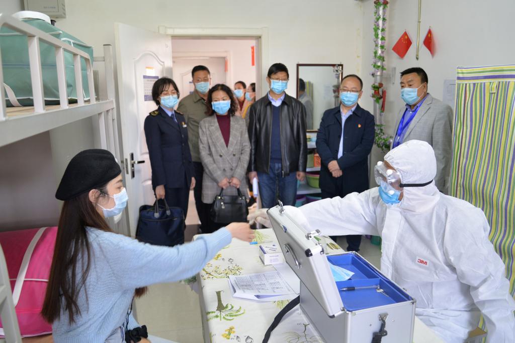 学院党委书记高淑美,院长王坤,党委副书记、副院长崔安平、副院长李诚,纪委书记杨建福,平凉市、崆峒区联防联控办公室领导和专家进行现场指导,学院各部门主要负责人参加观摩。学院部分教师、辅导员以返校学生的身份全程参与演练。