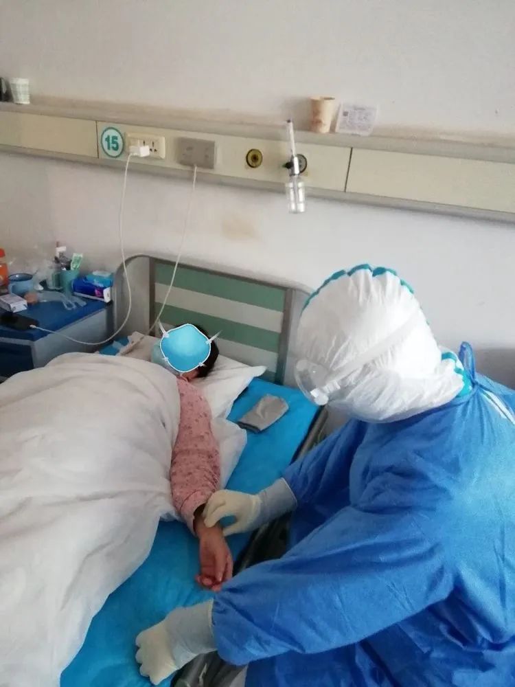 确诊病人年龄差距很大,最大的56岁,最小的只有1岁,起初接受治疗时情绪波动也很大。患者对疾病本身就很恐惧,加之隔离病房和医护人员包裹的防护服,病人恐惧、焦虑、激动等负面情绪会很多。所以医护人员除了治疗身体疾病,更多的是要心理疏导,只有心情好了,疾病才能更快的恢复。从重症监护室病房来支援感染科的主管护师张文娟最会开导病人,哄病人开心。
