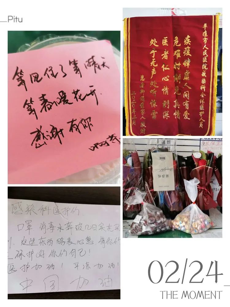 热心的市民们送来水果、酸奶、牛奶、护手霜、防压的药物……一件件小事,一张张卡片上写着“感恩有你”“最美逆行”“最美天使”……都为我们救治队的医护人员带来温暖和动力。