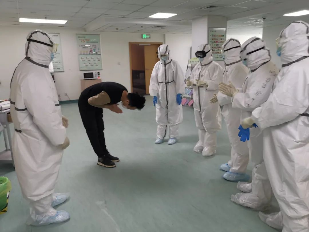 在隔离病区工作的这段日子里,大家都配合的相当默契,互相帮助、互相关心、互相监督,真的令人即温暖又感动。虽然我们穿着防护服都不知道对方是谁,仅仅靠着防护服上写的名字与那一双双美丽的眼睛去辨认对方,毫不夸张的说,脱下防护服我们可能都不认识站在面前的就是刚才与你并肩战斗的战友。他们干活都是那么的积极,就连最容易增加感染风险的咽拭子都要争着去采,不是他们不怕,而是少一个人进病房就减少感染的风险。等疫情过去的那一天,当我们摘下口罩的时候,一定要好好认清你们的脸庞。