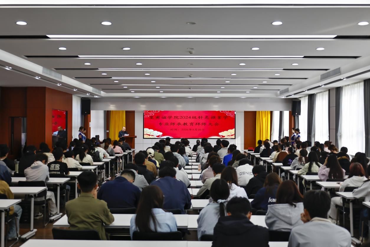 大会上,皇甫谧学院党总支书记王志江现场宣读师承结对名单。师徒双方郑重签署师承带教协议,2024级针灸推拿学学生依次向导师躬身行礼、奉茶拜师,尽显中医师承的庄重风范与学医初心。教师代表苗冲与学生代表秦永雅先后发言,共同表态将坚守医者仁心,深耕专业理论与针灸推拿实操,扎实走好中医求学行医之路。大会在全体学生集体庄严宣誓中落幕。