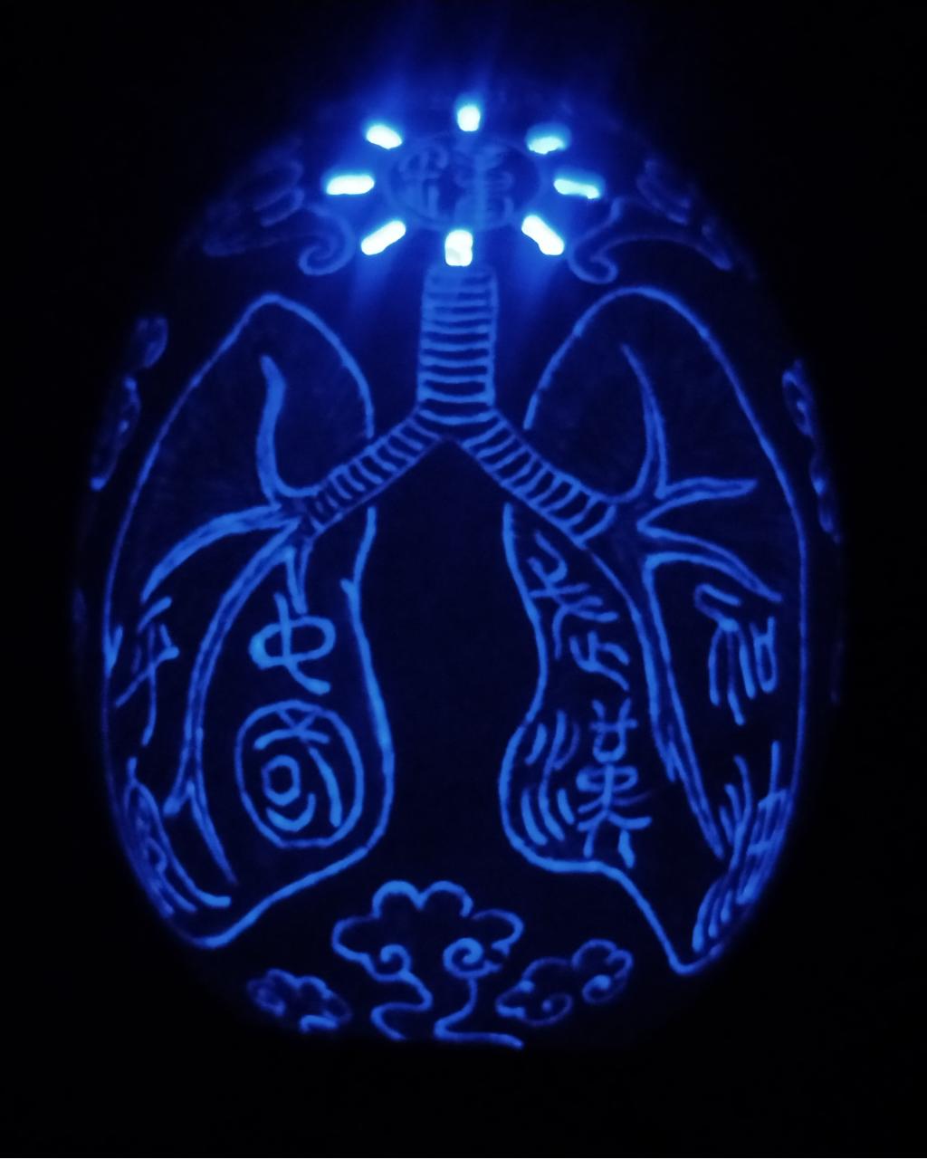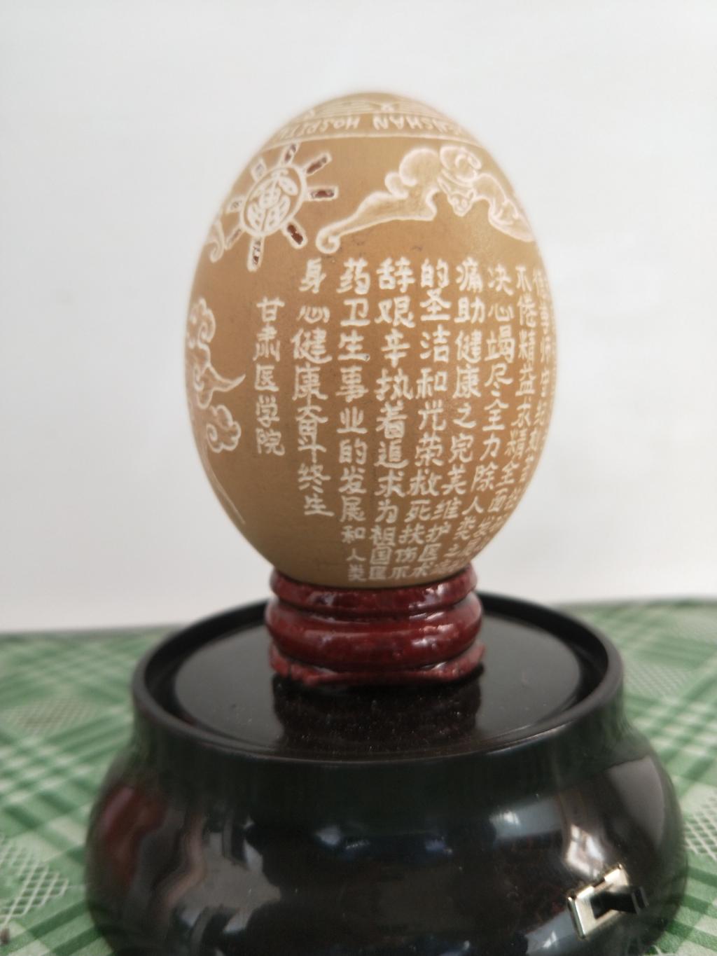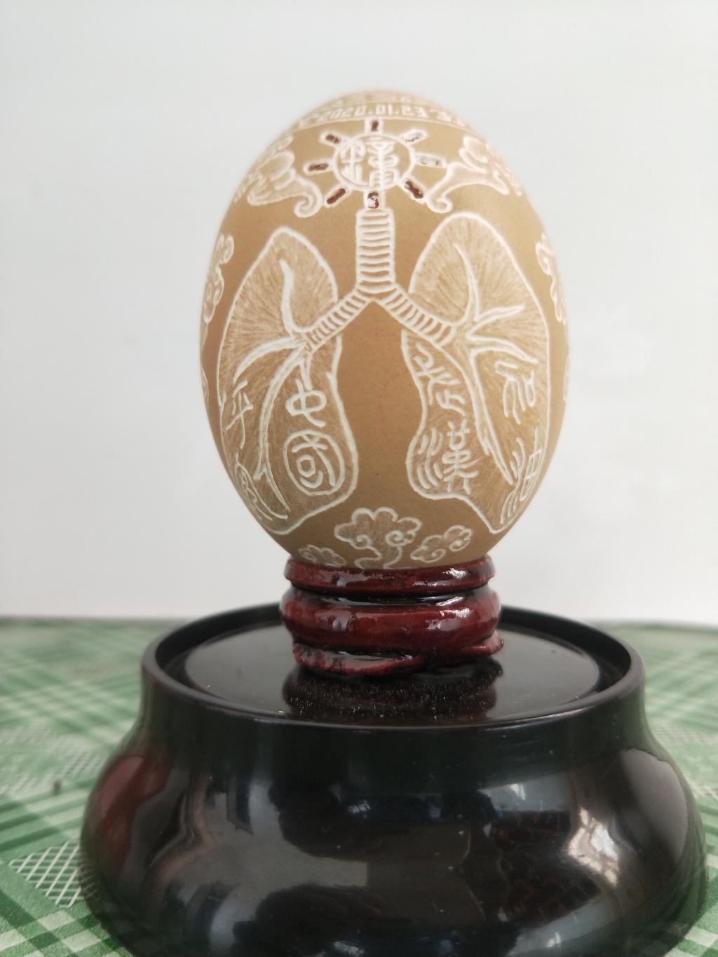 多么神圣的誓言!甘肃医学院2019级口腔专业学生白富强,将这誓言雕刻在了小小的蛋壳上。“中国平安 武汉加油”的字样,雕刻在“肺叶”上寄托着一名医学生的祝福。一枚蛋壳上雕刻了140余字,寓意着14亿中华儿女团结一心,众志成城!