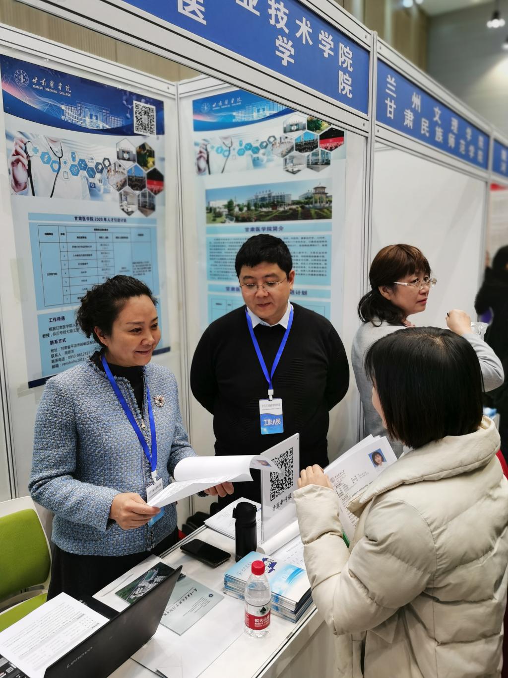 甘肃医学院高度重视此次招聘活动,院党委认真研究了人才引进计划,提前编印了学院简介、宣传图册,制作了学院推介视频。学院党委书记高淑美现场为前来咨询的毕业生宣传推介甘肃医学院,介绍办学情况、人才需求情况,发放学院宣传手册,并代表学院真诚欢迎高层次人才来甘肃医学院工作,为学院的发展建设奉献才华。