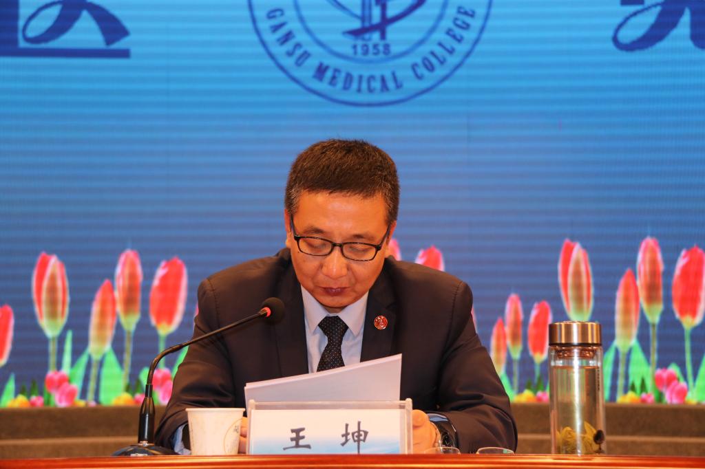 王坤首先代表全院师生向2019级全体新生表示最热烈的欢迎。其次,向全体新生介绍了学院办学历史及2019年取得的瞩目成就。在讲话中,王坤对全体新生提出了四点要求,一是热爱祖国,永怀报国之心;二是勤奋好学,做专业过硬之人;三是提高素质,做全面发展之人;四是勤于实践,做奉献社会之人。他希望全体新生要积极响应党和国家的号召,同全国人民一道向着美好的未来奋勇前进。