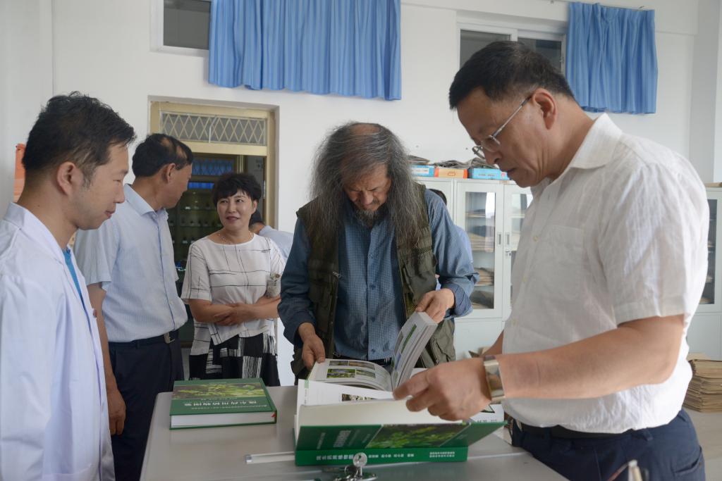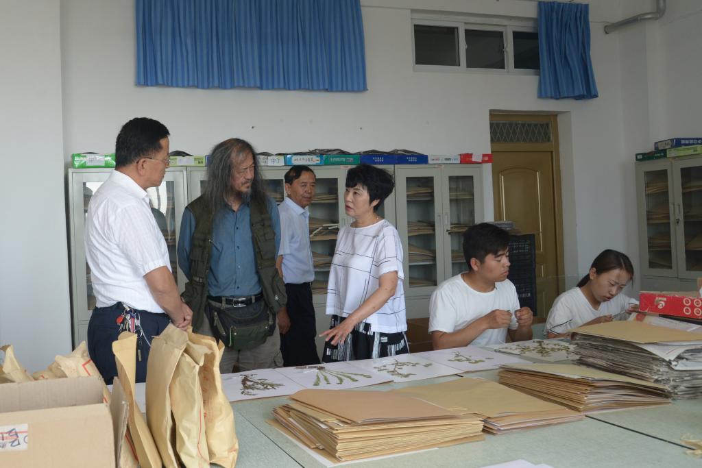 毕先生在观看了中药标本馆陈列的标本之后,来到中药标本制作室,与假期留校制作标本的师生开展交流,询问他们采集标本的经历,了解标本制作方法和地方药物分布情况,勉励同学们认真学习,为发扬中医药文化做出自己的贡献。