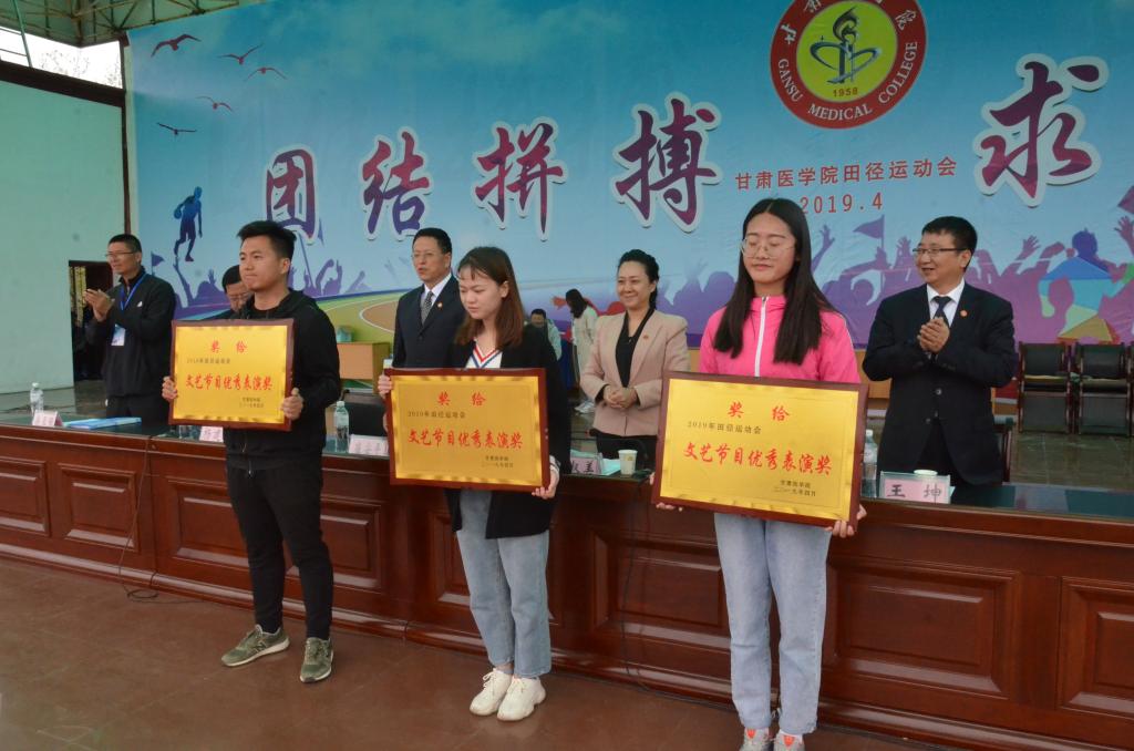 党委书记高淑美致闭幕词。高书记在致词中指出,大学要培养的是勇于负责、敢于担当的家国情怀,要塑造的是追求卓越、止于至善的精神境界,要锤炼的是坚忍不拔、永不言败的意志品质。体育运动正是实现这些情怀、境界、品质的重要载体。无论是赛场竞技,还是职场打拼,无论是学海苦读,还是科学探索,只有不断地历练自我、完善自我,才能实现人生的价值和追求。她强调,运动会留给我们的不仅仅是奖状、奖品,团结拼搏、永不放弃的体育精神必将伴随我们永远前行!她希望,同学们把在赛场上表现出来的自信从容、意气奋发、顽强拼搏的精神带到学习中去,带到生活中去,走下网络、走出宿舍、走向操场,参与体育锻炼,享受运动快乐,传递阳光能量,磨砺意志品质,弘扬“更高、更快、更强”的奥林匹克精神,刻苦学习,锐意进取,以优异的成绩庆祝新中国成立70周年,以饱满的热情为甘医明天的辉煌做出更大贡献!