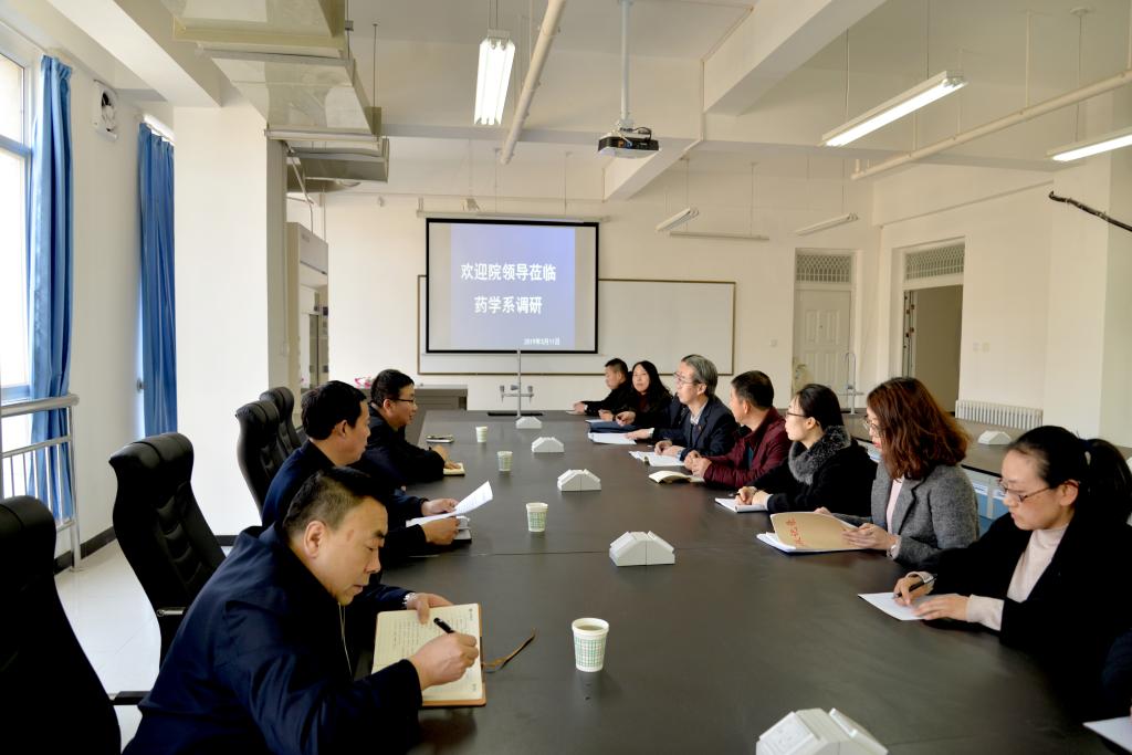 王坤在药学系调研时强调,药学发展分支较多,我们在教育教学的过程中,一定要明确学科发展方向,教师要在专业范围内跟上学科发展前沿。要认识到,无论我们教什么,无论我们研究什么,无论我们的工作思路是什么,都一定要围绕本科教学,围绕通才教育;理论课、实践课都要以有用、能用为主;按照人才培养方向,制定课程设置,合理规划安排课程内容。药学系一定要克服新建院系的困难,迎难而上,在现有条件下,解决问题,完善机构,绝不能耽误正常的教育教学工作。