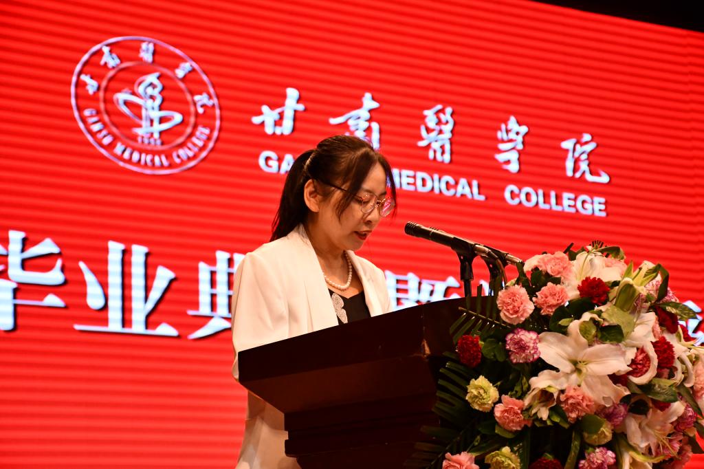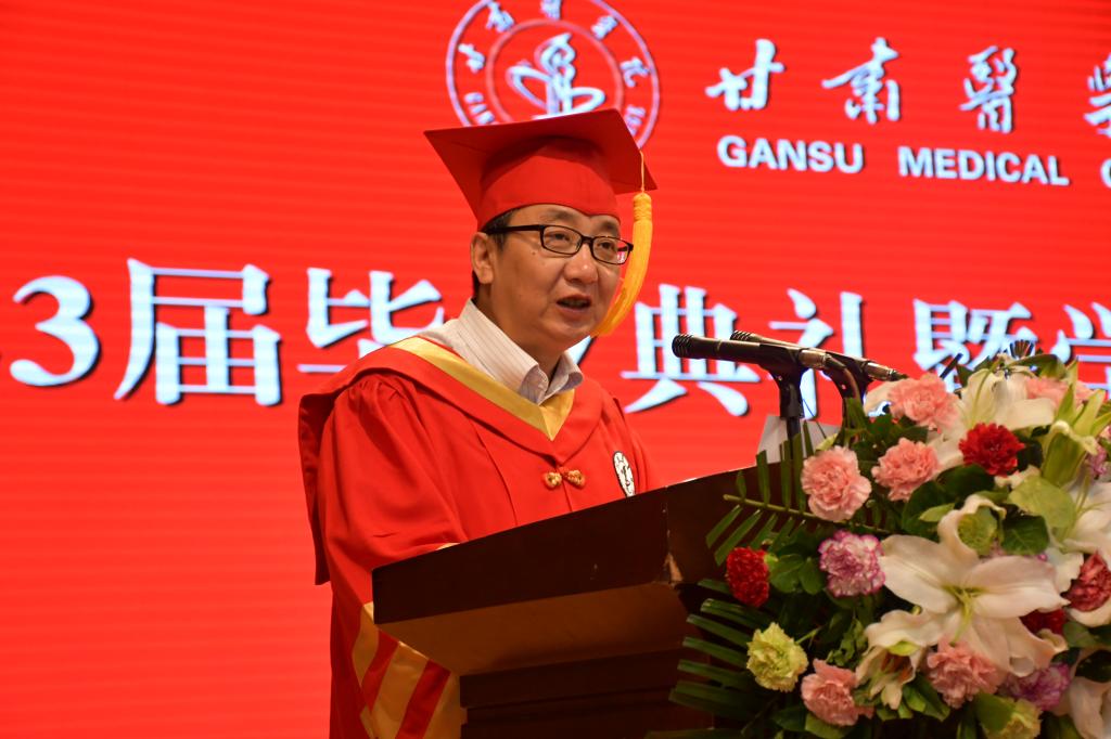 王坤表示,今天的毕业典礼,是一个值得铭记的时刻。在大家带着理想、满怀信心准备扬帆远航之际,希望同学们心怀感恩,忠于祖国,用仁爱之心和一流业绩,绽放青春光彩,回报伟大祖国;要爱岗敬业,服务人民,在守护人民群众健康的实践磨砺中增强本领,精于技艺,敏于责任,彰显“大医精诚”的品质担当,在平凡岗位上追求卓越,在服务人民中点亮人生;要不忘初心,笃行不怠,铭记甘医校训,立足岗位实际,勤学习、勤思考、勤实践,在实干中闯出一片天地、干出一番成绩、作出一番贡献,续写属于你们、属于母校的传奇与荣光。