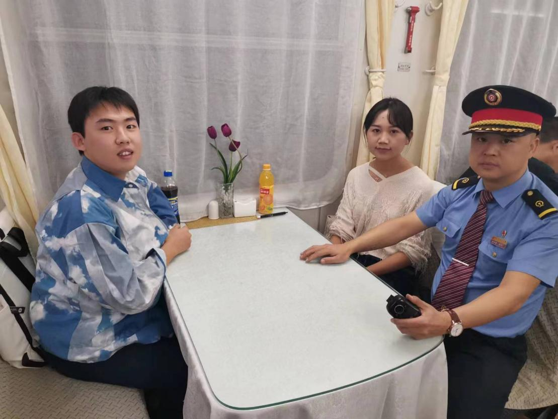 事后朱军和列车长合影