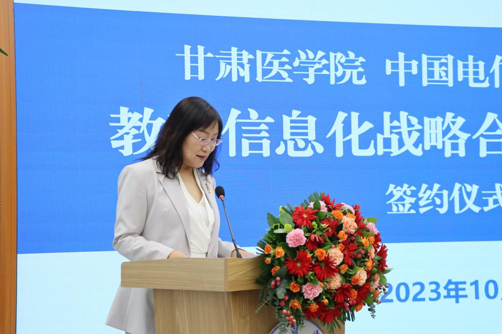 孙岩介绍了中国电信甘肃分公司的发展前景和核心优势。她表示,本次战略合作是“教育丝路”与“信息丝路”的深度对接,必将产生乘数效应,构建我省高校教育信息化新格局,为双方高质量发展拓展战略空间、提供战略支撑。