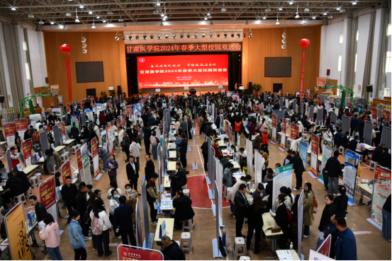 3月26日,甘肃医学院2024年春季大型校园双选会在学校体育馆举行。共有全国各地160余家医院、药企在现场招才引智,提供临床医学、护理学、药学、助产学、医学影像技术、医学检验技术、口腔医学、中药学、康复治疗学等4077个岗位,参加双选会毕业生991人,达成就业意向200余人,现场签约70余人。