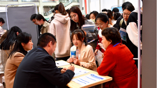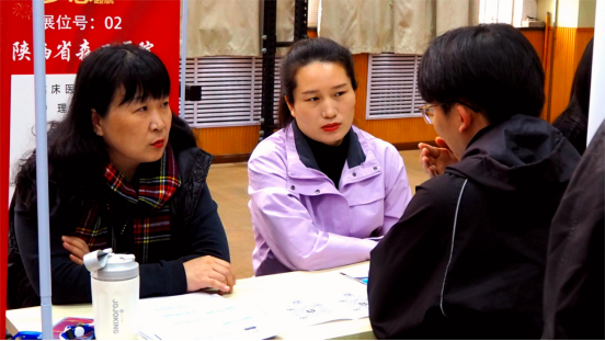 双选会现场人头攒动、气氛热烈。同学们精心准备个人求职简历,面对心仪的单位,主动咨询工作内容、职业发展空间、薪资待遇等问题,用人单位相关负责人耐心答疑解惑。本科护理专业2012班的秦丽欣同学说,如果大学是梦想开始的地方,是人生的第一驿站,那么今天的招聘会就是扬帆起航的港湾,是人生新的起点。今年即将毕业的针灸推拿专业学生冉佳乐将自己精心制作的简历投递给了新疆生产建设兵团第五师双河市总医院。“我选择这家医院是因为他们的环境、进修次数多一点,而且对我们应届生的待遇也好。”冉佳乐欣喜地说。