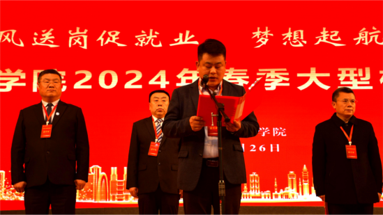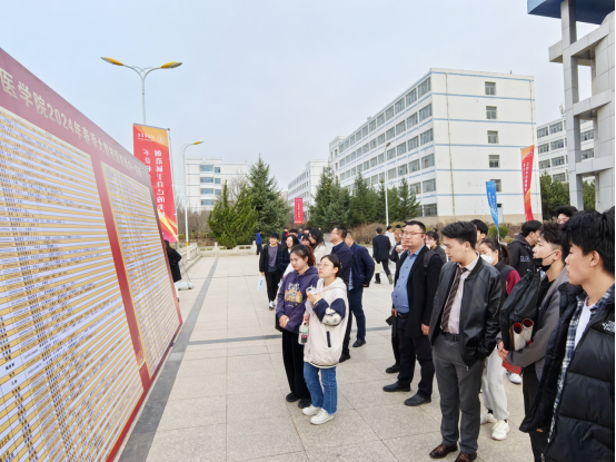 副院长、附属医院党委书记雷鹏举,平凉市人才开发交流服务中心副主任张敏,新疆库车市卫健委党委书记徐亮亮,通用环球西安北环医院党支部书记、环球医疗西北事业部总经理王烁出席开幕式,党委副书记李岳主持开幕式,参会单位嘉宾、学校相关部门、各院系负责人以及2024届毕业生参加开幕式。