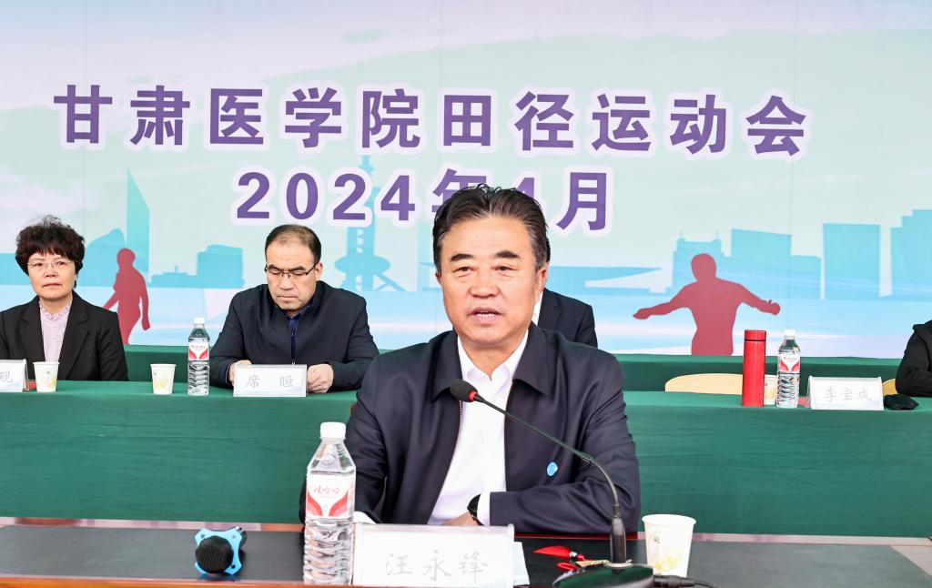 汪永锋在讲话中指出,在建设开放的现代化新型应用型高等医学院校的新征程中,全校上下要牢固树立大卫生、大健康的观念,认真落实第一次党代会确定的“12226”发展思路,在抓好人才培养质量的基础上,开齐开足体育课,积极倡导举办体育赛事,帮助学生在体育锻炼中享受乐趣、增强体质、锤炼意志、健全人格,促进甘医学子文化学习和体育锻炼协调发展、健康成长,培养德智体美劳全面发展的社会主义建设者和接班人。同时,要积极将皇甫谧文化、崆峒文化等有鲜明地域特色的优秀传统文化底蕴融入到人才培养全过程。作为崆峒山下省属医学本科院校的学子,在中华民族伟大复兴的新征程中,要始终牢记“健康所系、性命相托”的神圣职责,带头践行大卫生、大健康理念,把学习医学健康知识与积极参加体育锻炼发扬好、坚持好。同时,要义不容辞的扛起挖掘整理弘扬优秀传统文化的责任,让我们的办学特色更鲜亮、办学竞争力更强劲。