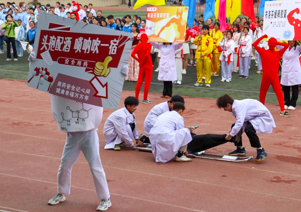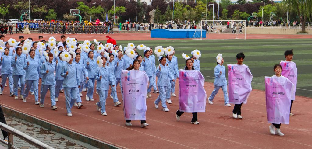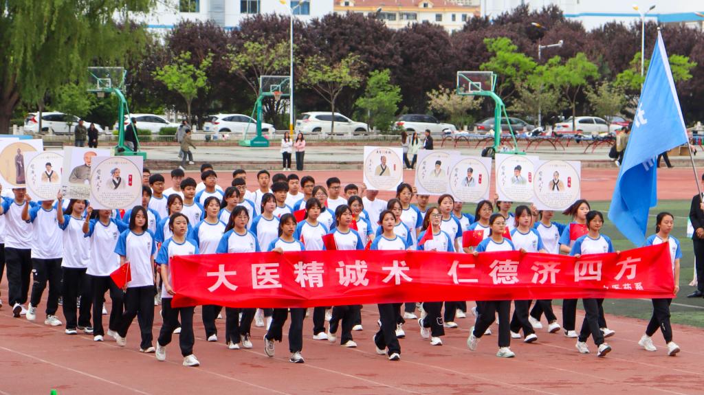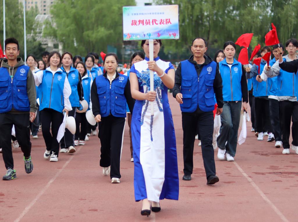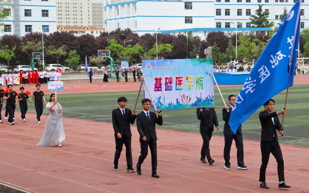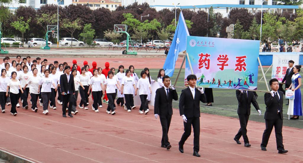 伴随着欢快激昂的旋律,各代表队、各院系方阵有序入场,他们步伐坚定、精神饱满、气宇轩昂,彰显了甘医师生昂扬向上、团结奋进的精神风貌。