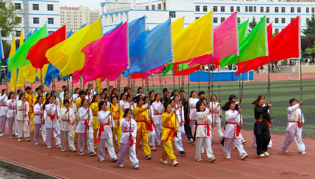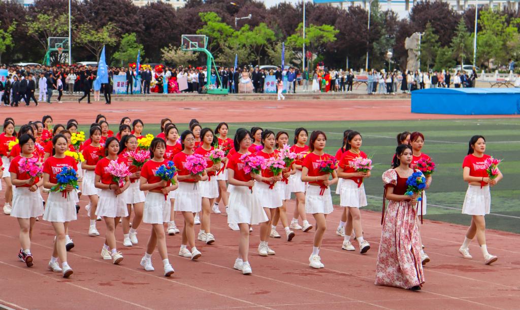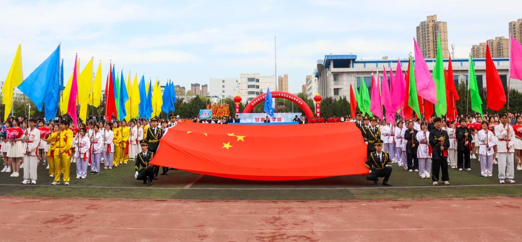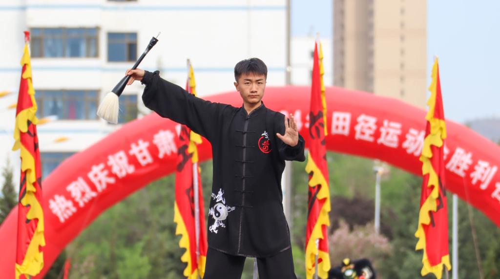 开幕式后,进行了精彩而富有特色的文艺演出。崆峒武校友情出演,现场展演崆峒武术,武校学生起势抱拳,动作干净利落,出拳刚劲有力、踢腿虎虎生风、马步稳固到位,一招一式充分展现了武术的精气神。拳、扇、刀、剑、棍等轮番上阵,精湛的武艺赢得现场阵阵掌声。军体操表演、舞蹈《骁》啦啦操《Forever Young》、民族舞蹈表演,既充分展示学校的办学成果和学院学科特色,也为观众呈现了一场视觉与听觉盛宴,将开幕式推向了高潮。