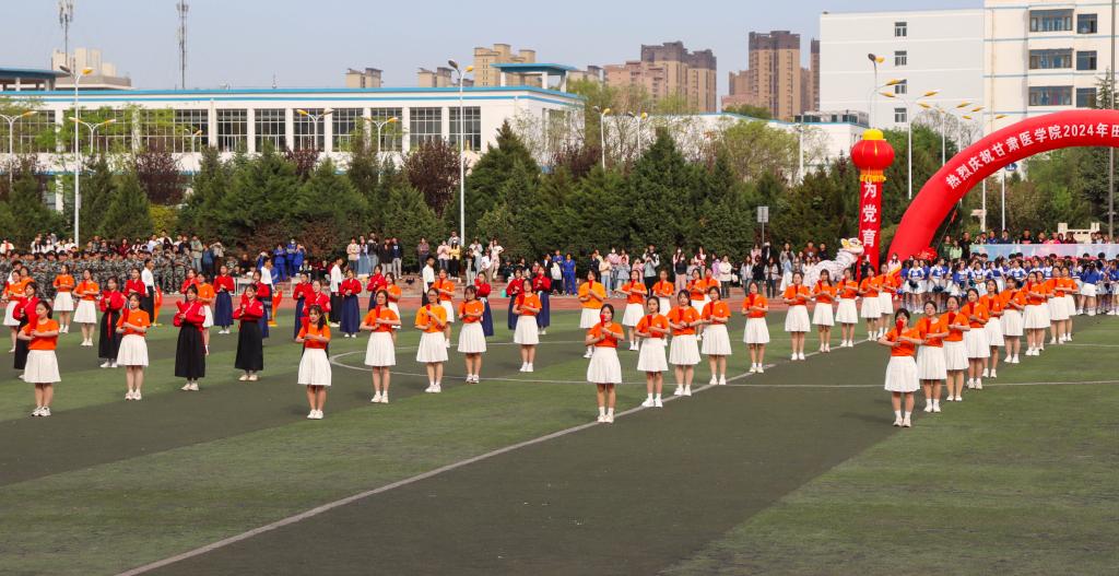 人间最美四月天,不负春光与时行。4月27日上午,甘肃医学院2024年田径运动会在体育场盛大开幕。学校领导汪永锋、崔安平、杨建福、雷鹏举、赵玉敏出席开幕式。党委书记汪永锋致辞并宣布运动会开幕,副院长崔安平主持开幕式。各部门负责人、全体师生参加开幕式。