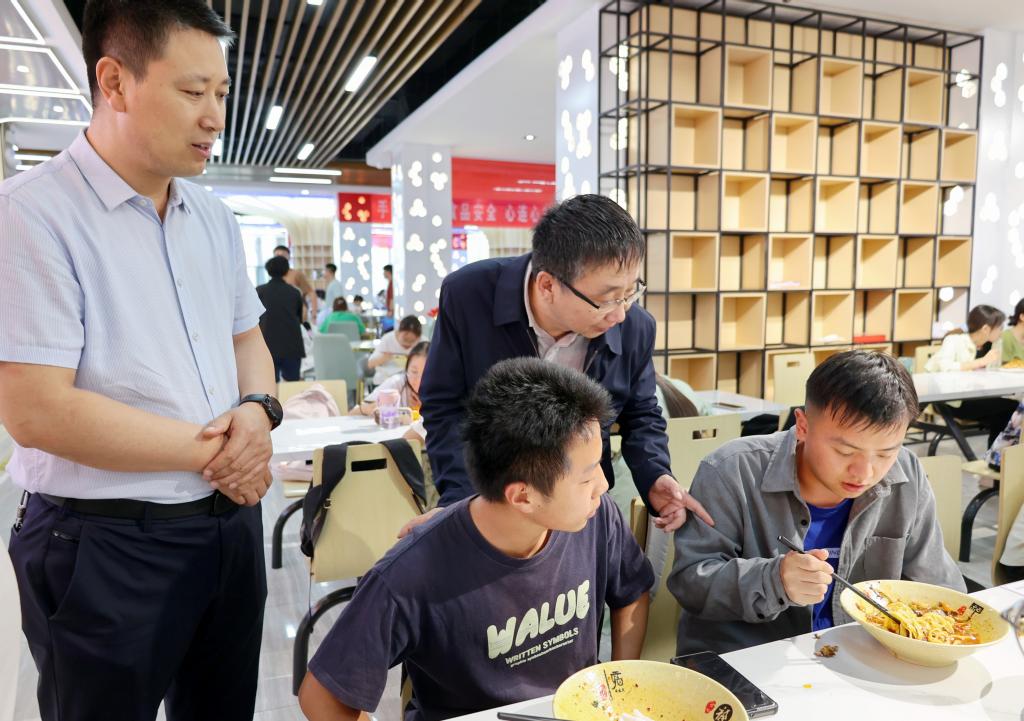 王坤强调,校园食品安全责任重大,学生餐饮工作涉及方方面面,学校相关部门和食堂经营人员一定要严格把好食品安全进口关、质量关,强化食品安全责任,筑牢校园食品安全防线。要进一步加强食堂管理,不断提升饭菜质量,丰富菜品种类,让大家吃的放心安心。同时,也希望同学们珍惜粮食,养成文明用餐的好习惯,共同营造温馨和谐的校园生活环境。