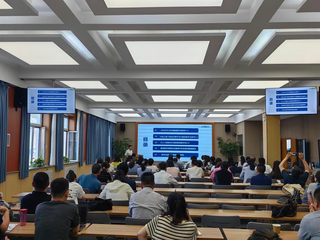 景玉宏做了题为《数字技术赋能医学教育改革——兰州大学基础医学院数字化教学管评测系统建设》的专题讲座,阐述了医学院校要推进医学教育的数字化转型,加速推进信息技术与教育教学的深度融合,知识图谱是这几年数字智慧教育的一个重要方式,兰州大学基础医学院依托学校超星学习通平台知识图谱模块,基于基础医学专业核心课程建设“教、学、管、评、测”一体化平台,以实现教师“精准教”和学生“个性学”这一目标。景玉宏强调:“在整个教学过程中如何更好地体现个性化教育,帮助学生适应医学课程的学习,引导学生尤其是大一新生,从医学“小白”到“入门”医学,就像给学生系好第一粒扣子,这都是我们建设团队所思考的主要问题”。