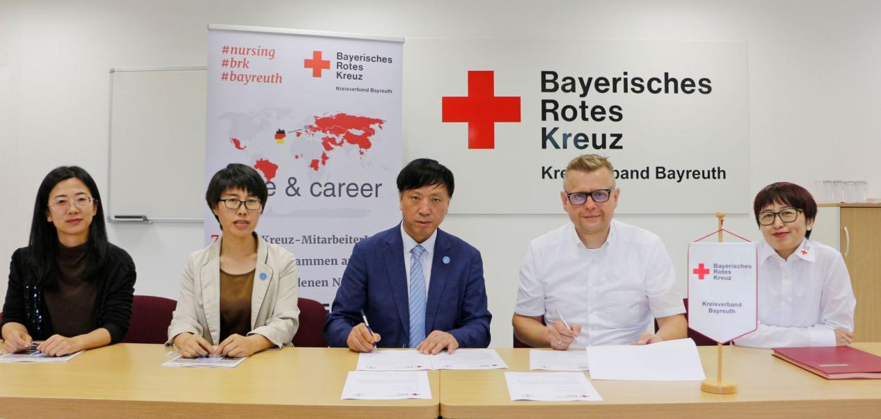 图为学校和德国拜巴伐利亚州红十字会拜罗伊特区分会签署合作意向书