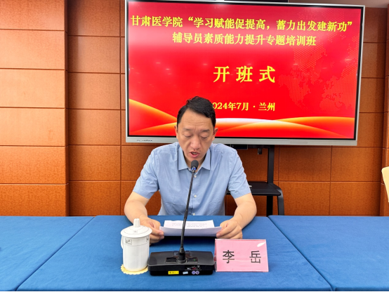 李岳在动员讲话中指出,本次培训是在学校第一次党代会提出“12226”发展思路,建设开放的现代化新型应用型高等医学院校的关键时期,举办的一次十分重要的辅导员素质能力提升专题培训,目的在于更新观念、开拓视野,凝聚发展新动能,激发发展新活力,提升辅导员队伍的整体素质,为不断提升学校教育教学质量奠定坚实的根底。他强调,全体培训学员要统一思想,保持谦虚好学、博采众长、为我所用的态度,潜心学习,认真聆听专家的讲座,积极参与小组讨论,勇于分享自己的经验和见解,在专业知识和实践能力上学有所获、学有所成,不断提升辅导员的理论水平、职业能力和专业素养,推动学校辅导员队伍专业化、职业化发展。