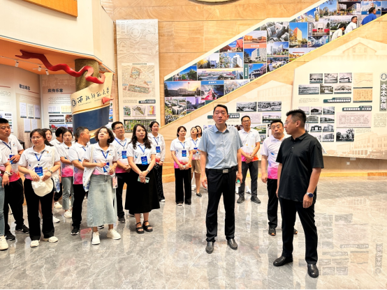 在西北师范大学考察时,西北师范大学学生工作部部长慕小军介绍了西北师范大学的发展历史及学生管理、思政教育和劳动教育工作。考察组实地参观了校史馆、“团小铎”沉浸式思政剧场及正在建设中的“一站式”学生社区。