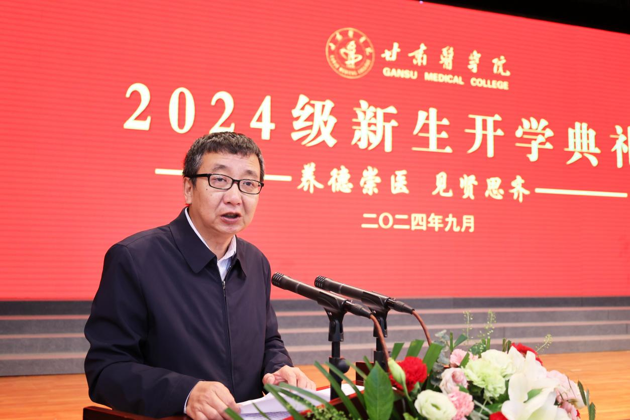 王坤在回顾总结了学校筚路蓝缕、砥砺前行的办学历程后说,大学生活是人生中最为重要的一个阶段,这个阶段形成的思维、学习和生活习惯将奠定大家的事业基础,决定同学们的未来发展方向。王坤勉励同学们要坚持立大志、做挺膺担当的奋斗者。要坚定理想信念,厚植家国情怀,将“青春小我”融入“时代大我”,把个人学习与国家前途命运、社会发展需要紧密结合,顺应时代发展、响应时代召唤、展现时代担当,让青春梦想与时代脉搏同频共振、交相辉映,在伟大复兴路上奋力跑出甘医学子的优异成绩,在人生的舞台上绽放青春之光。要坚持明大德,做仁心仁术践行者。要秉承“养德崇医、见贤思齐”的校训,始终把崇德放在成长成才的首要位置,从自身内省中提升道德修为,在医学实践中涵养仁心仁术,将真善美融入到锤炼高尚医德的实践中,追求更有高度、更有境界、更有品位的人生。要坚持求大道,做生命奇迹创造者。要更加主动和自觉,不断增强学习内驱力,让自己真正成为学习的主人,善于探究式学习,聚焦最新研究成果,在勤思细研中培育批判思维和创新意识,坚持实践性学习,在躬身实践中将理论知识转化为实际能力,积累工作经验,注重跨界学习,在交叉融合中跨越知识边界和本领壁障,把人类知识成果运用到创造生命奇迹的实践中。