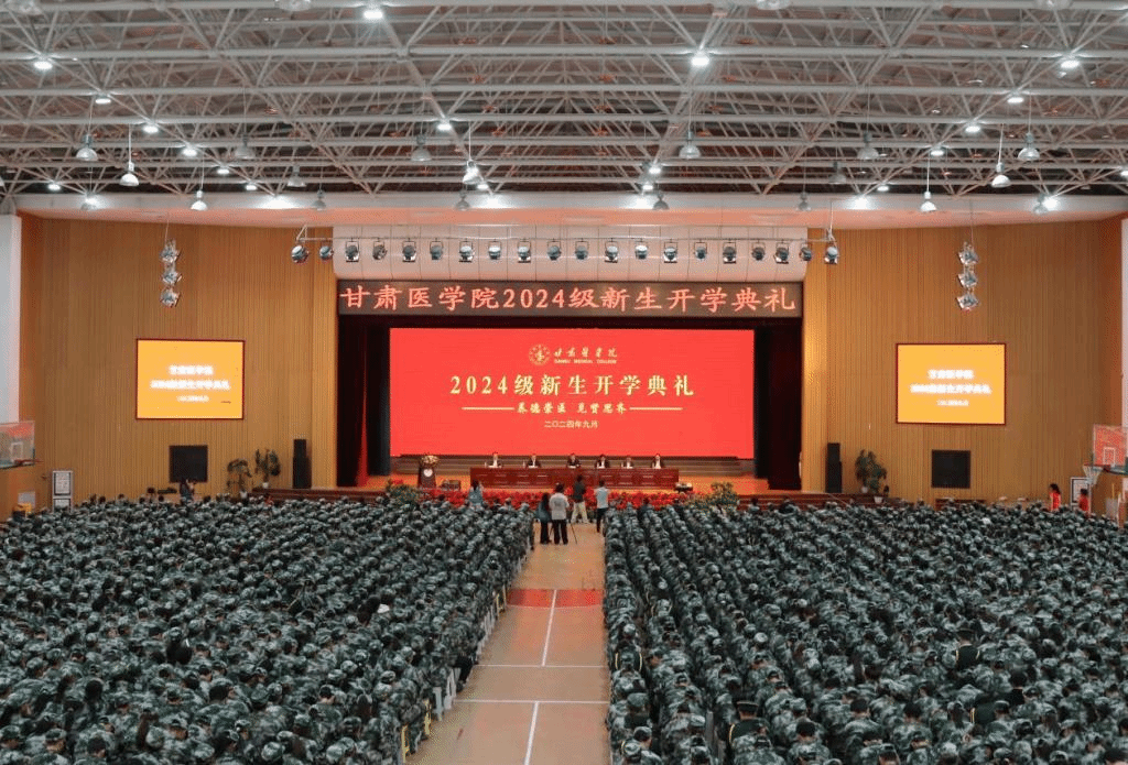 八方春风育桃李,金秋硕果满枝头。9月14日,甘肃医学院2024级新生开学典礼在体育馆隆重举行。2193名甘医新生怀揣梦想与希望,以蓬勃向上的姿态迎接入学荣光,翻开自己人生的崭新篇章。院长王坤致辞,纪委书记杨建福主持,雷鹏举、刘凯、胡希杰、练成出席,学校各部门、院部负责人,2024级班主任、辅导员以及全体新同学参加。