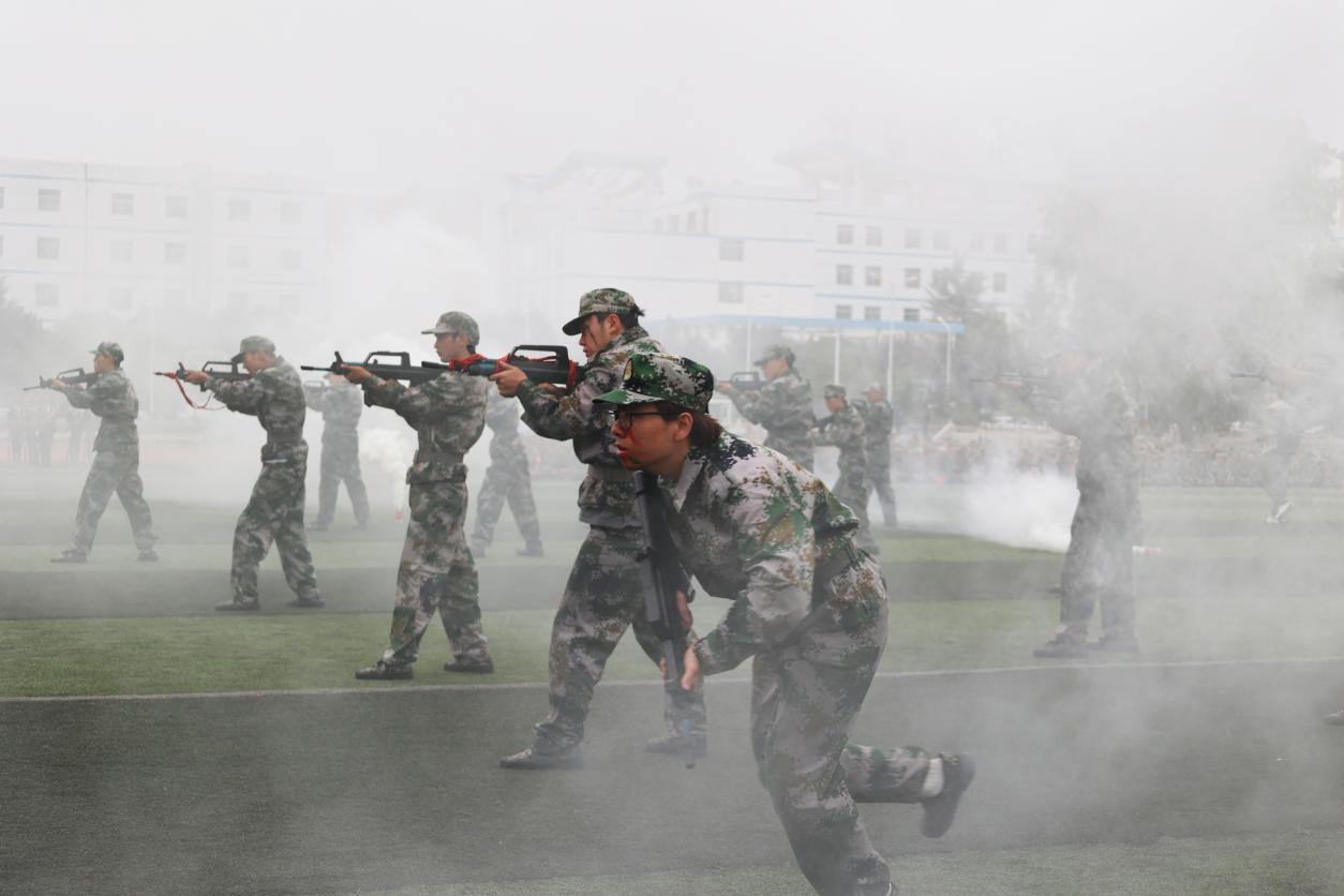 随着国旗护卫队的入场,本次军训汇报表演正式开始,由分列式方阵、坦克方阵、彩旗方阵、擒敌拳方阵、战术方阵先后进行了表演,他们动作规范,步调一致,掌声不断。最后军训汇报表演在全体合唱《强军战歌》中落下帷幕。