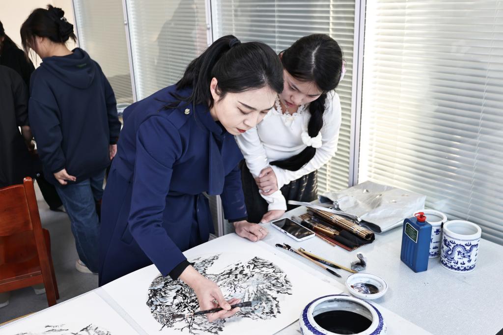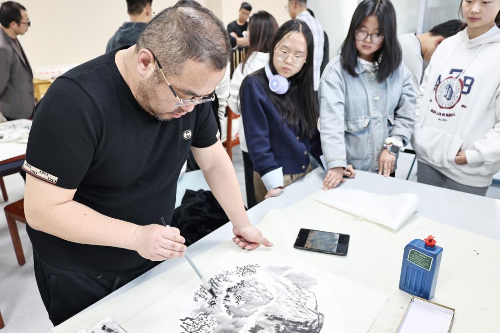 陇东学院的专业老师们围绕作品的布局、色彩、线条等方面进行了详细指导,帮助同学们更好地掌握绘画技巧,提升艺术修养。刘宏伟、孔德民老师现场挥毫泼墨,同学们认真观看并学习他们的绘画技巧。