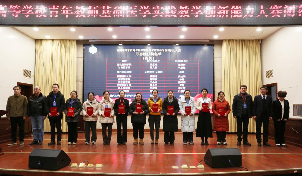 2024年12月26日至27日,由全国高等学校国家级实验教学示范中心联席会基础医学组、全国高等学校基础医学教师实践技能协同创新发展联盟主办的首届高等学校“青年教师教学创新能力(基础医学实验技能专项)”大赛在安徽医科大学举行,本次大赛吸引了来自全国36所院校的144名青年教师参与。我校基础医学院四位老师参加形态学与机能学的综合理论测试。
