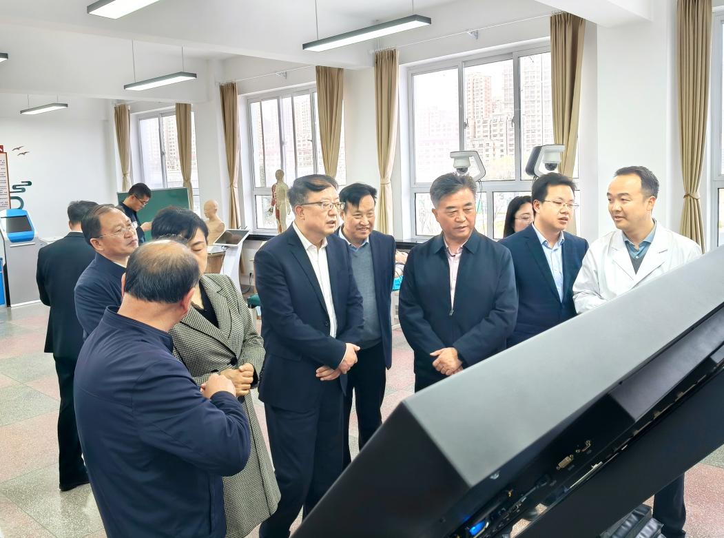 调研组一行深入皇甫谧学院,参观了康复医学实训室、针灸推拿学实训室以及皇甫谧研究院,听取学科专业建设、人才培养、皇甫谧文化传承、社会服务等方面的情况介绍。调研组对学校挖掘传承皇甫谧中医药文化、打造办学特色取得的成绩给予肯定,对学校如何传承与发展传统中医针灸推拿技术提出建议,并就如何进一步利用地方特色中医药资源,促进区域经济和社会发展的策略进行交流讨论。
