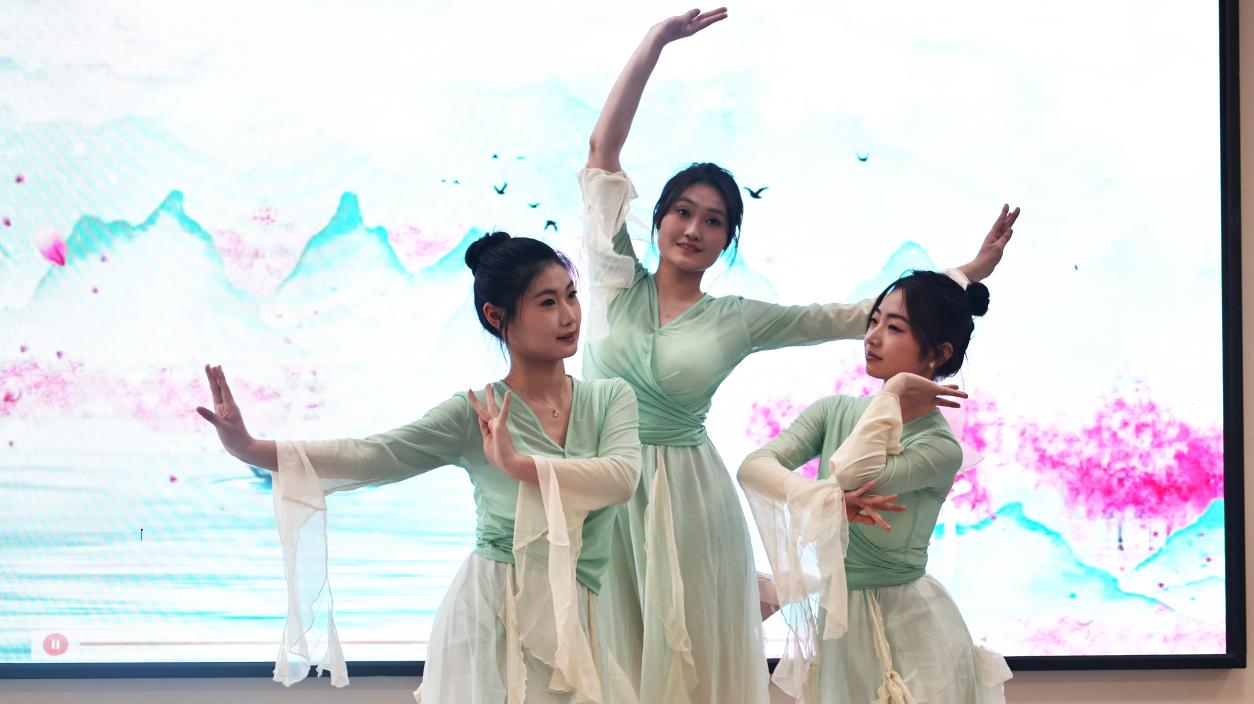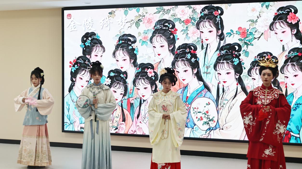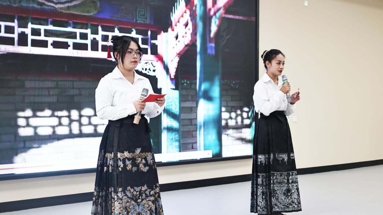 活动在古筝弹奏《春江花月夜》中进入第一篇章“诵读经典,传承文明”,歌舞《上春山》,表演者用歌声和柔美的舞姿为师生呈现了一场视觉的盛宴;美文诵读《墨香中的文化传承》、《金陵绮梦》、《宋词欣赏》,带大家穿越时空,感受《红楼梦》的金陵城的宁荣二府中众多女子的命运,体会豪放婉约的宋词,让经典名著激发在场所有观众的中国文化DNA。
