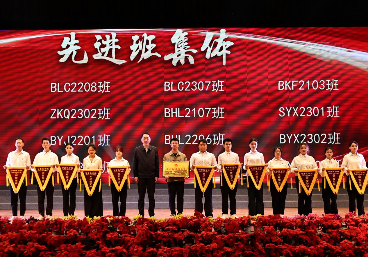 大会对获得甘肃医学院2023-2024年度“五四红旗团总支”“五四红旗团支部”“先进班集体”“优秀共青团员”“优秀共青团干部”“三好学生”“优秀学生干部”集体及个人进行了表彰。