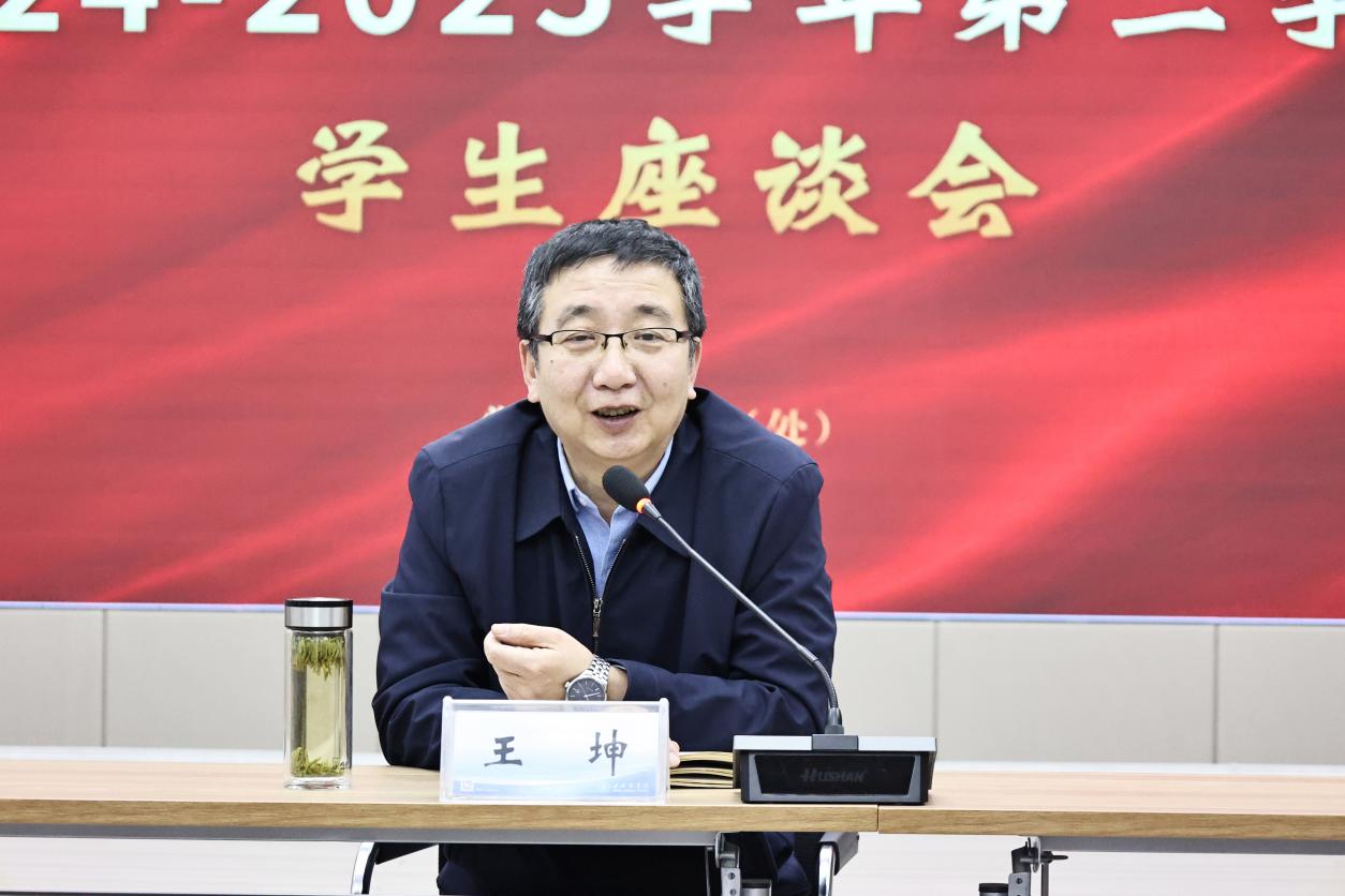 为深入了解学生在学习生活中的实际需求,切实解决学生实际困难,倾听学生对学校发展的建议,5月13日晚,学校在大学生活动中心四楼路演大厅召开2024-2025学年第二学期学生座谈会。校长王坤、党委副书记李岳出席本次座谈会,党委组织部(人事处)、党委宣传统战部、学校办公室、教务处、学生工作部(处)、基本建设与后勤管理处、招生就业处等职能部门以及各学院学生科长、60多名学生代表参加座谈会。