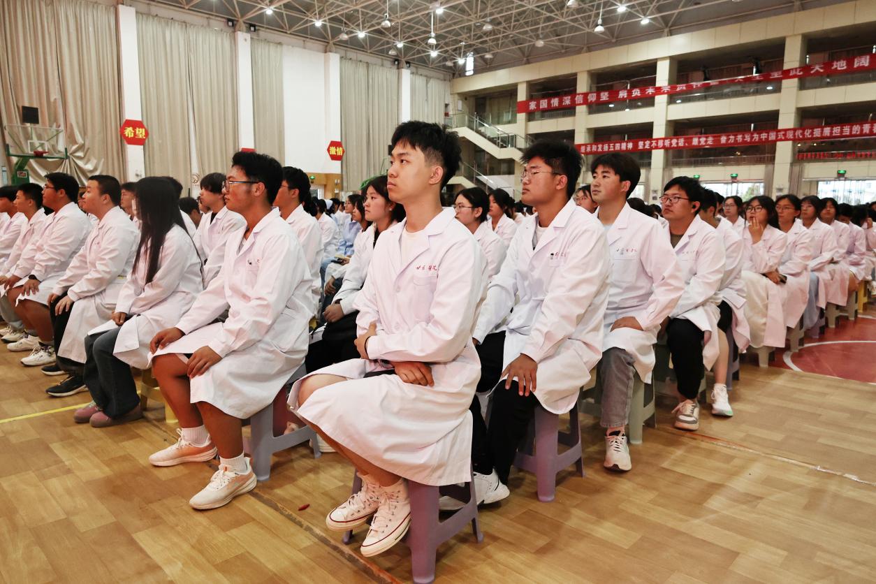 刘凯强调,全体同学要以“八棵树精神”铸魂,将个人理想融入国家发展,在乡村振兴、健康中国战略中勇担使命,做“心怀家国”的担当者;要以“工匠精神”强技,在解剖学、临床技能等课程中锤炼本领,让“精益求精”成为职业底色,用日复一日的积累练就过硬本领,做“脚踏实地”的奋斗者;要以“奋斗精神”笃行,在基层医疗、公共卫生中勇挑重担,让青春在党和人民最需要的地方绽放,在基层医疗一线书写青春答卷,做“人类健康”的守护者。要以“大道”立心,以“仁心”为帆,在守护生命的道路上,走出属于新时代医学生的壮阔征程。